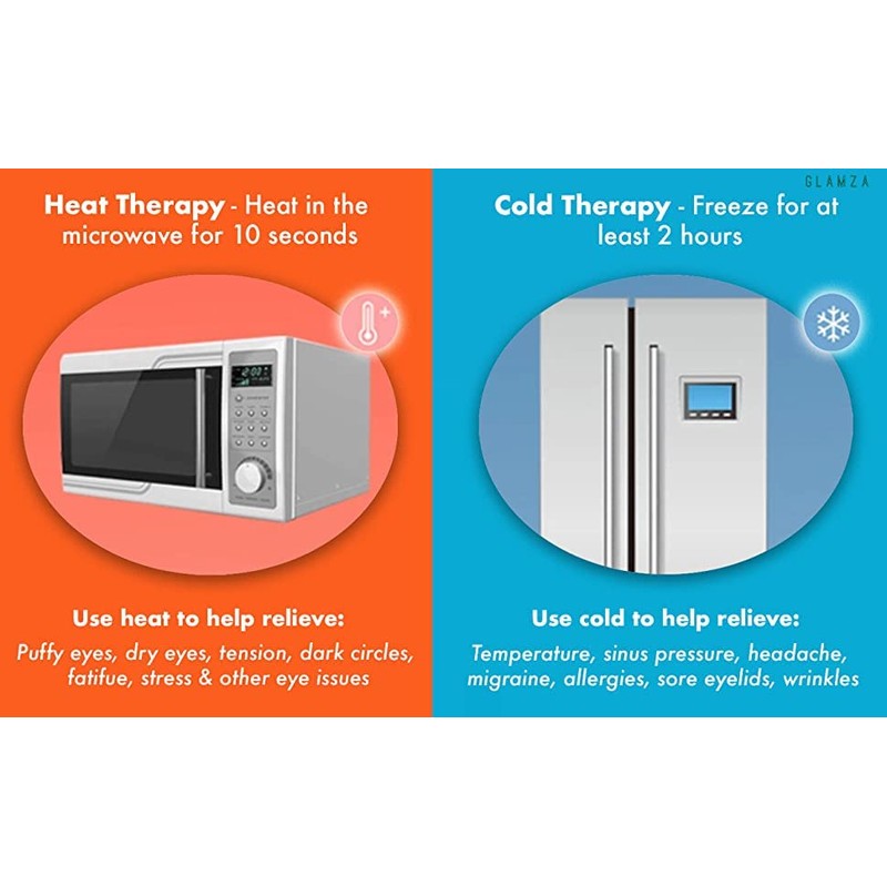 • Alternatively, you can freeze your mask for cold therapy. A chilled mask helps relieve dry, swollen eyes, migraines and sinus headaches. It can also help remove the stitch from freshly waxed eyebrows or pain after a cosmetic procedure.