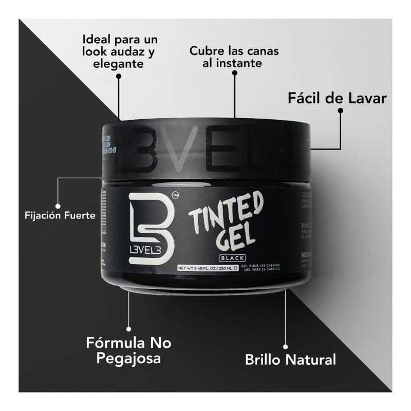 🖤 Color y estilo en un solo paso: El Gel con Tinte Negro Level3 cubre canas al instante mientras proporciona una fijación fuerte y duradera, ideal para quienes desean lucir un look impecable sin esfuerzo.