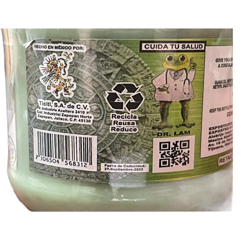- ★ Excelente para el dolor muscular, dolores de cabeza Ayuda a aliviar los síntomas del resfriado frotando el pecho y la espalda 17 ingredientes naturales / Great for muscle pain, headaches Helps aliviate cold symptoms by rubbing on chest and back 17 Natural Ingredients