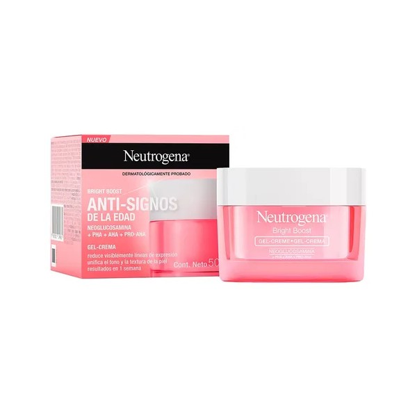 La nueva Crema Gel NEUTROGENA BRIGHT BOOST Anti Signos de la Edad ayuda a reducir visiblemente líneas de expresión y manchas, unifica el tono y la textura de la piel y recupera la luminosidad. Para una piel más joven, uniforme y luminosa en tan sólo 1 semana.
