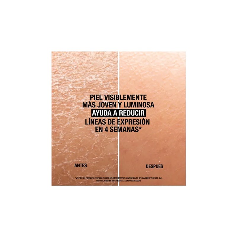Su fórmula con textura Crema Gel ligera y de rápida absorción combina la acción renovadora del complejo Neoglucosamina + PHA (Gluconolactona) + AHA (Acido Mandélico) + PRO-AHA (Citrato de Trietilo) + glicerina hidratante, acelerando la renovación celular hasta 10 veces más.