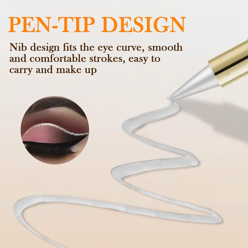 Gel Eyeliner Pen, Matte White, Waterproof Cream Eyeliner Smudge-Resistant, Quick Drying, Smooth Texture Eyeliner Pen, Stick Pencil, Long Lasting Tattoo for Eye Make-Up (White)