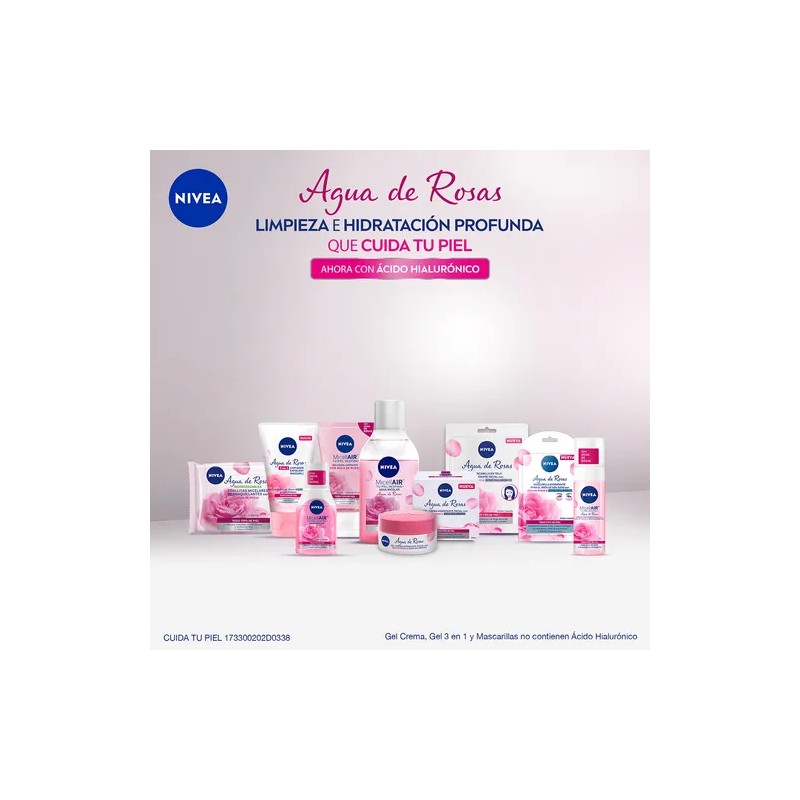 - Experimenta la frescura y la suavidad del Gel Facial Limpiador con Agua de Rosas de Nivea y disfruta de una piel limpia y radiante en cada uso.