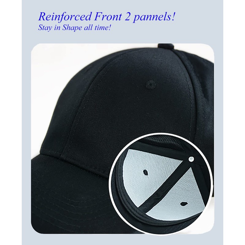 - 6 Panel Construction. 6 Eyelets Venting. Structured Front panels. Build in Sweatband to stay Fresh.