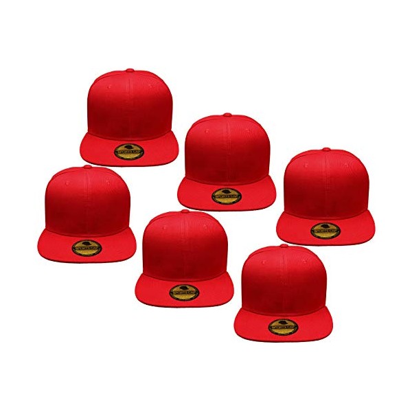 Gelante Plain Blank Flat Brim Adjustable Snapback Baseball Caps LOT 6 Pack Red