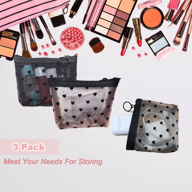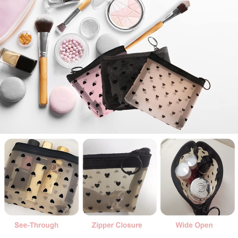 - ✨EASY ACCESS: Visual mesh design, you can clearly see the contents in the mini bag from outside, which is very convenient for quick and easy access, saving a lot of time. Printed with many black heart patterns, delicate and elegant.