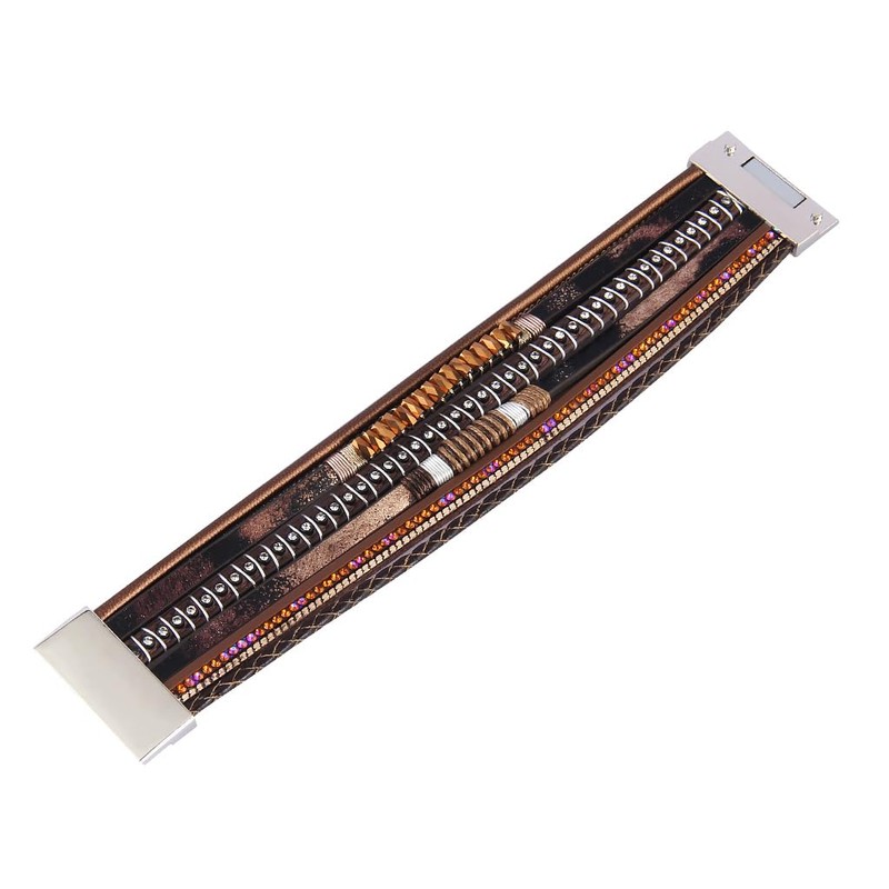 GelConnie Leather Bracelets for Women Wrap Bracelet Boho Wristband Bangle Womens Crystal Boho Bracelet Brown Leather Wrap Bracelet