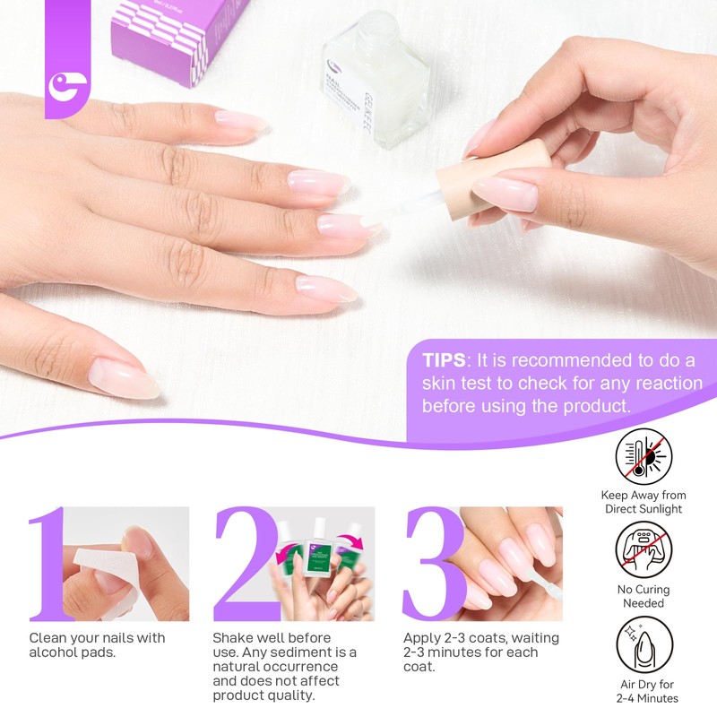 - Gelike ec Nagelhärter Einfache Anwendung, deckt und schützt die Nägel, stärkt schwache Nägel, weiches Pinseldesign, leicht aufzutragen, verschmiert nicht leicht.