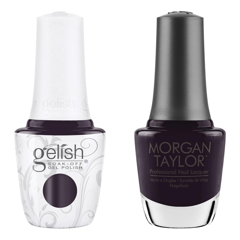 Gelish "A Hundred Present Yes" Duo, Purple Charcoal Creme - Includes Gel Polish and Lacquer