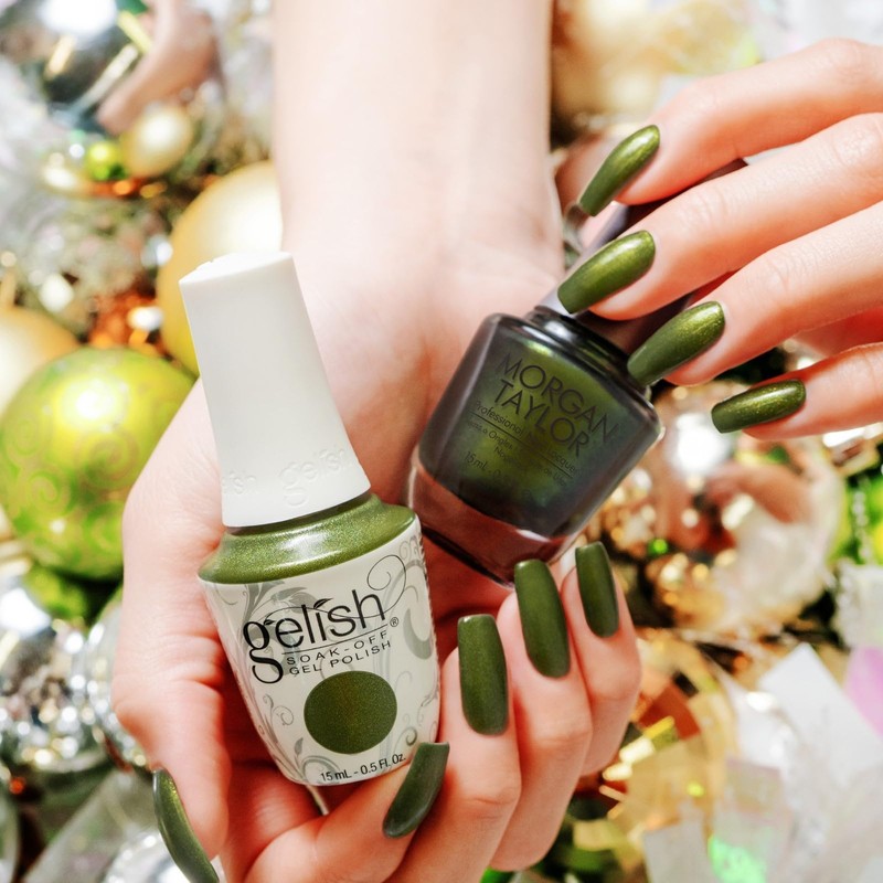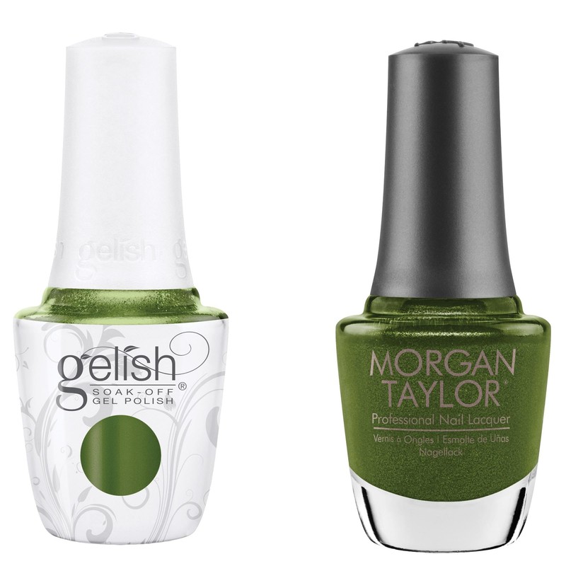 Gelish "Bad To The Bow" Duo, Olive Shimmer - Includes Gel Polish and Lacquer