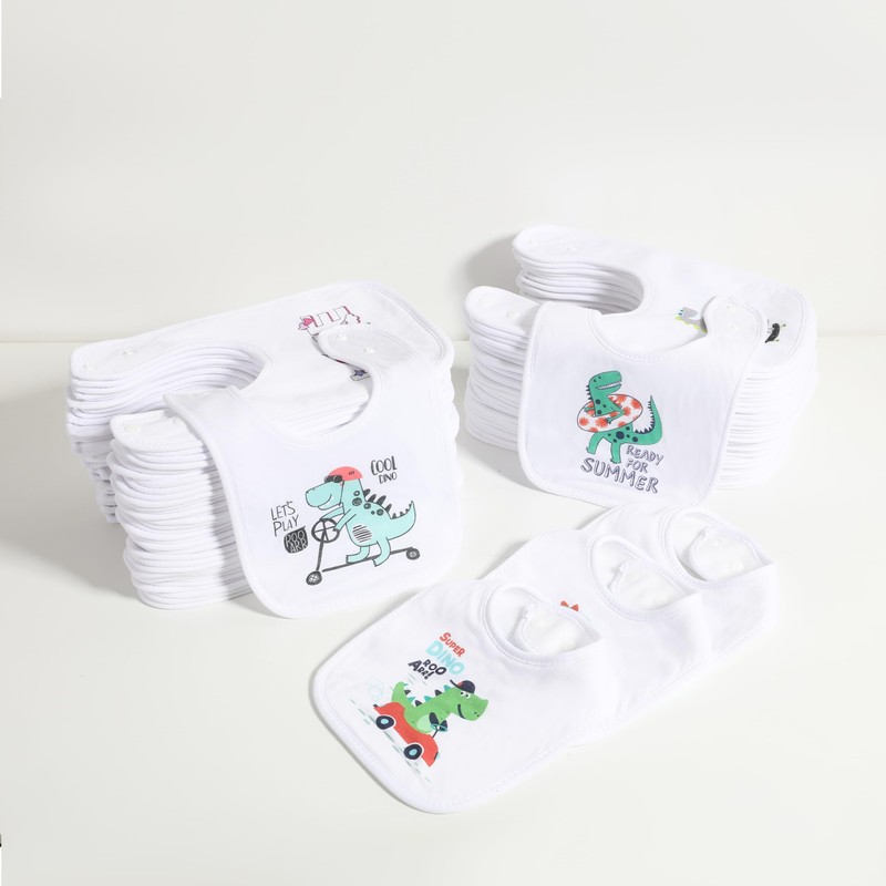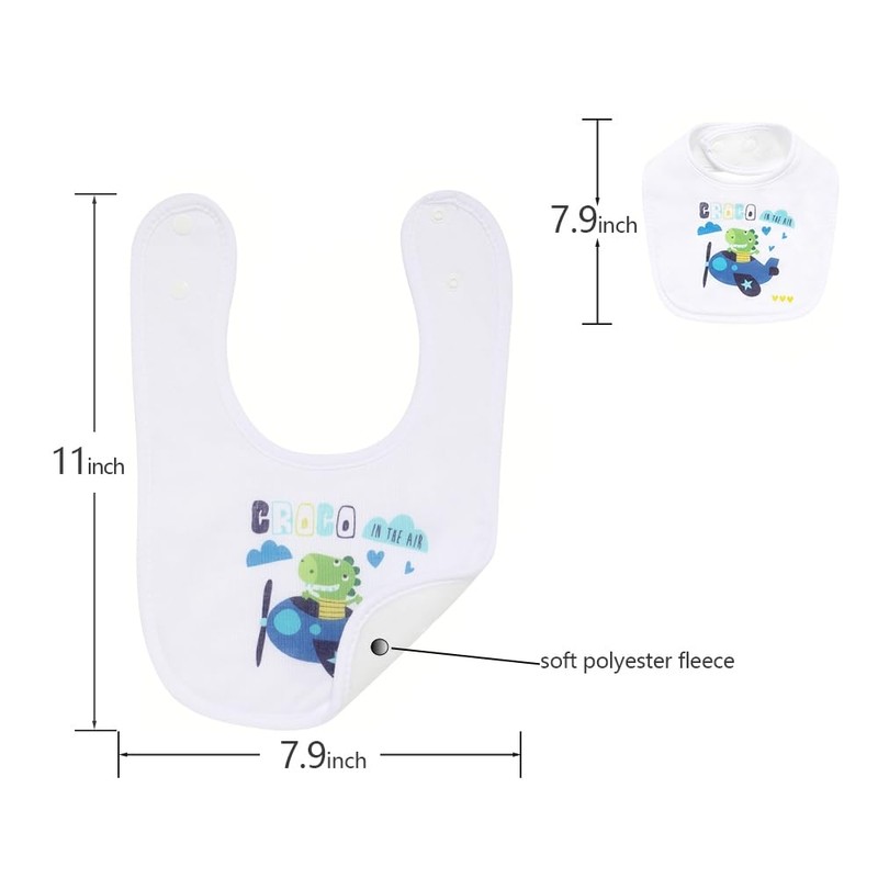 - SNAP CLOSURES: Each bib features both neck and waist snaps for a secure yet adjustable fit as baby grows, available in 2 snap configurations.
