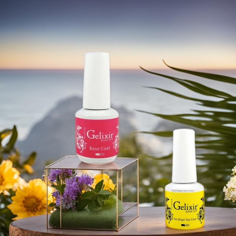 Gelixir Soak Off Gel Base and Top Coat No Wipe 0.5 oz