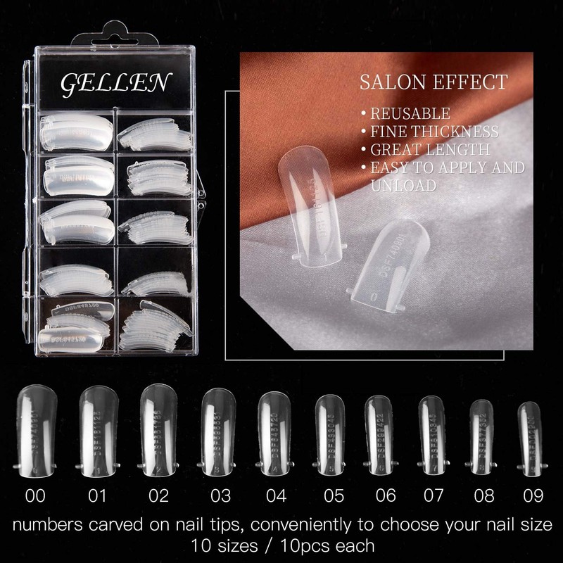Gellen Kit de uñas de gel de polietileno, kit de uñas acrílicas para uñas juego de uñas transparentes – Decoración de uñas todo en uno francesa kit de extensión de uñas de gel 02