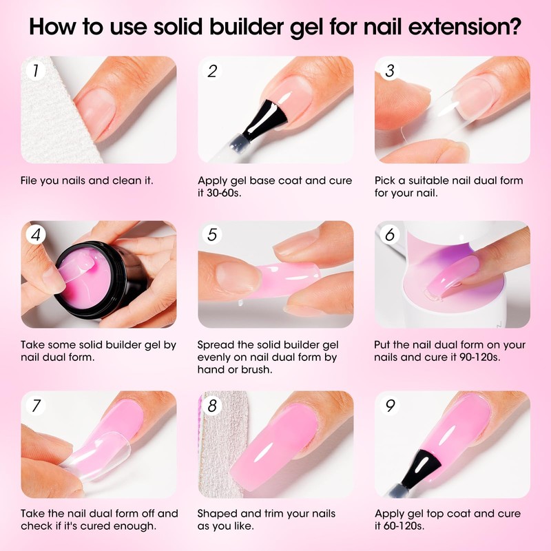 - 【Non-Stick Solid Builder Gel】It includes 1*15g pink solid nail extension gel, allowing you to create salon-quality nail extensions at home effortlessly, saving both time and money.