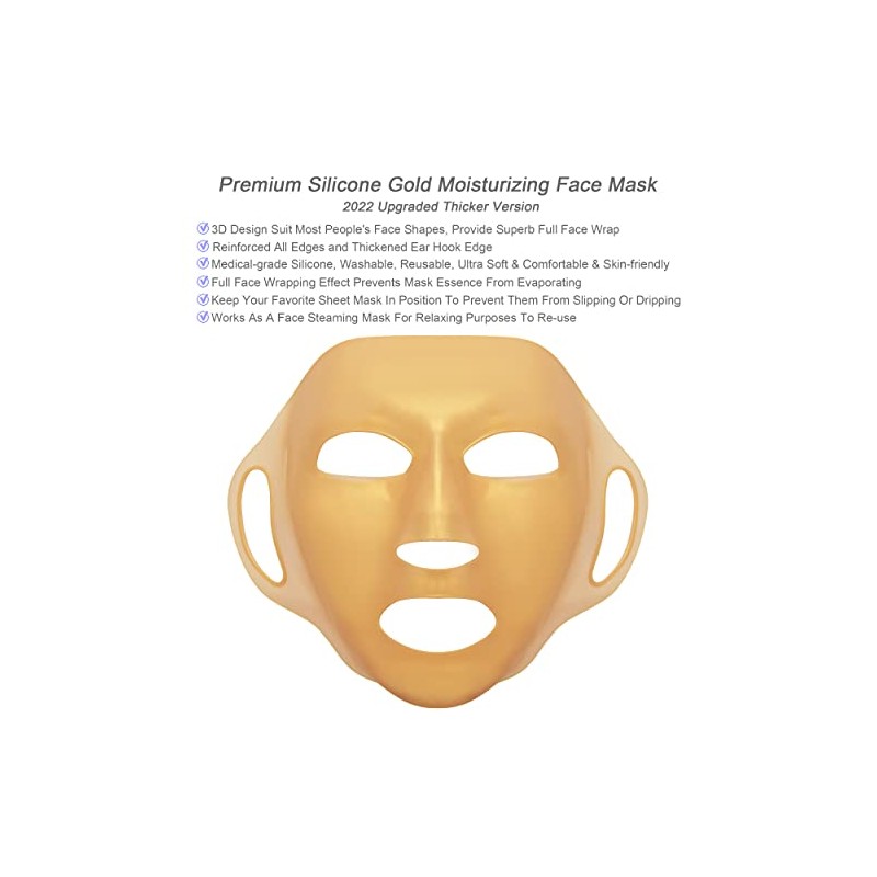 GELMAY 3D Gold Moisturizing Face Mask 4Pack - Silicone Facial Mask Sheet - Reusable Face Mask Cover for Women - Facial Patches Wrap for Prevent Evaporation