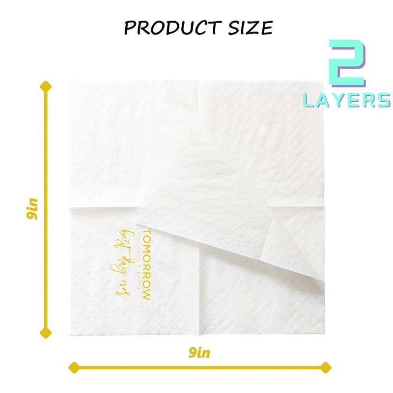 • Ahorra dinero,pra a granel: Ahorra tiempo y dinero con este paquete de servilletas a granel; incluye un total de 100 servilletas para garantizar que tengas suficiente para tu próxima celebración. El diseño moderno de colores hace que cualquier almuerzo, cena, postre, brunch, bebida, bar de buffet se vea elegante. Es una gran pieza decorativa para la mesa y se ve hermosa en fotografías. Divertida vajilla decorativa para una épica fiesta de despedida de soltera; las servilletas van bien con Mr and Mrs o simplemente fiesta casada Decor. El juego de servilletas con estampado dorado brillante tiene colores que tienen la versatilidad para adaptarse a muchas ocasiones relacionadas con la boda. La servilleta dorada con el texto «Tomorrow Is Going To Be The Best Day» es una bonita adición a tus celebraciones. Perfecto para bodas o cualquier celebración.