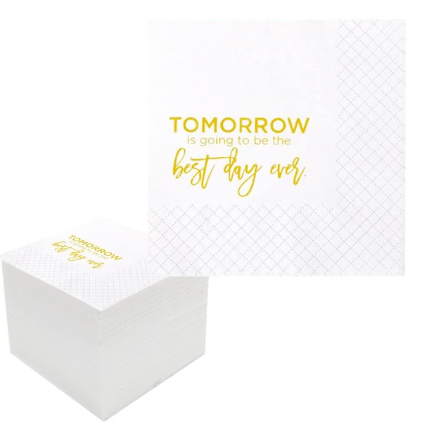 Geloar Servilletas de cóctel para cena de ensayo, paquete de 100 servilletas de papel desechables Tomorrow Is Going To Be The Best Day Ever para ensayo, cena, boda, despedida de soltera, compromiso, soltero, 2 capas, 5 x 5 pulgadas