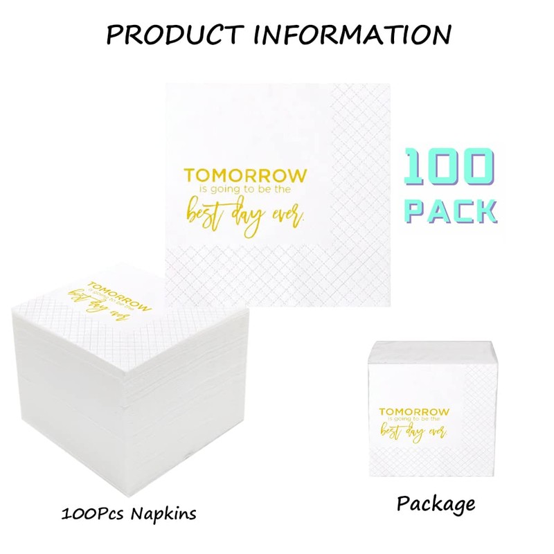 • Las servilletas de papel desechables Geloar Gold Tomorrow Is Going To Be The Best Day Ever son una manera divertida de celebrar un evento, especialmente un cumpleaños, despedida de soltera o fiesta de cóctel. Cita la servilleta y añade algo de alegría a tu celebración. Cada paquete incluye un juego de 100 servilletas hechas de papel duradero de 2 capas, asegurando que sean absorbentes y suaves.