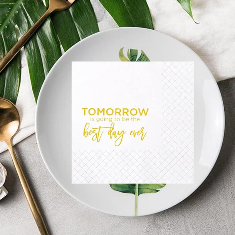 • Protege tus superficies: Mantén tus mesas limpias y sin manchas de alimentos derrados, bebidas, cócteles o refrescos; cada servilleta de oro Tomorrow Is Going To Be The Best Day Ever es altamente absorbente y suave zar una experiencia deedor cómoda