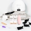 1 x UV/LED Gel Nail Lamp, 1 x Colour Coat, 1 x Base Coat, 1 x Top Coat.