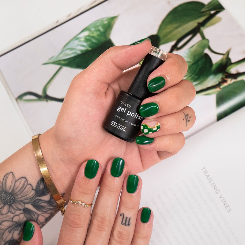 Apply Gelous Base Coat, Gelous Colour Coat, then Gelous Top Coat, curing each coat with the Gelous UV/LED Gel Nail Lamp for a strong gel manicure that lasts over two weeks!