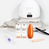 1 x UV/LED Gel Nail Lamp, 1 x Colour Coat, 1 x Base Coat, 1 x Top Coat, 1 x Essentials Tool Pack (Blueberry Cuticle Oil, Nail File, Orangewood Cuticle Sticks).