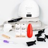 1 x UV/LED Gel Nail Lamp, 1 x Colour Coat, 1 x Base Coat, 1 x Top Coat.