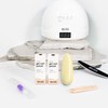 1 x UV/LED Gel Nail Lamp, 1 x Colour Coat, 1 x Base Coat, 1 x Top Coat, 1 x Essentials Tool Pack (Blueberry Cuticle Oil, Nail File, Orangewood Cuticle Sticks).