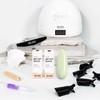 1 x UV/LED Gel Nail Lamp, 1 x Colour Coat, 1 x Base Coat, 1 x Top Coat, 1 x Essentials Tool Pack (Blueberry Cuticle Oil, Nail File, Orangewood Cuticle Sticks).