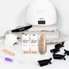 1 x UV/LED Gel Nail Lamp, 1 x Colour Coat, 1 x Base Coat, 1 x Top Coat, 1 x Essentials Tool Pack (Blueberry Cuticle Oil, Nail File, Orangewood Cuticle Sticks).