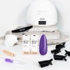 1 x UV/LED Gel Nail Lamp, 1 x Colour Coat, 1 x Base Coat, 1 x Top Coat, 1 x Essentials Tool Pack (Blueberry Cuticle Oil, Nail File, Orangewood Cuticle Sticks).