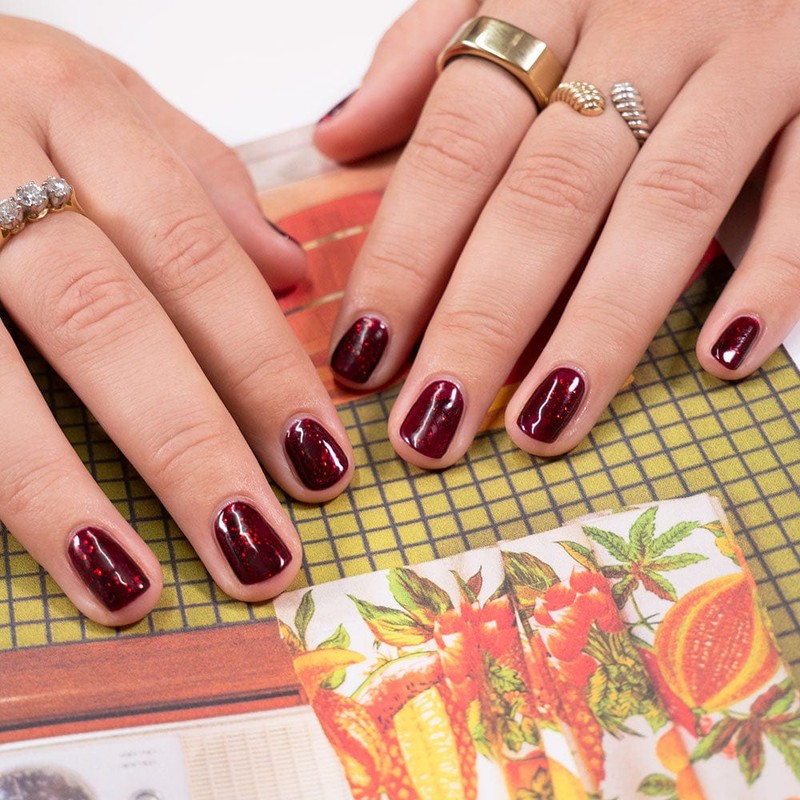 Hop into Dorothy's slippers and take a journey down the yellow brick road with this dazzling red glitter.