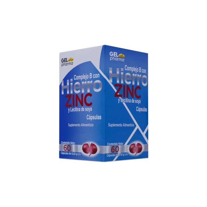 Gelpharma Complejo B Hierro, Zinc Y Lecitina De Soya, 60 Capsulas, Gel Sabor Sin Sabor