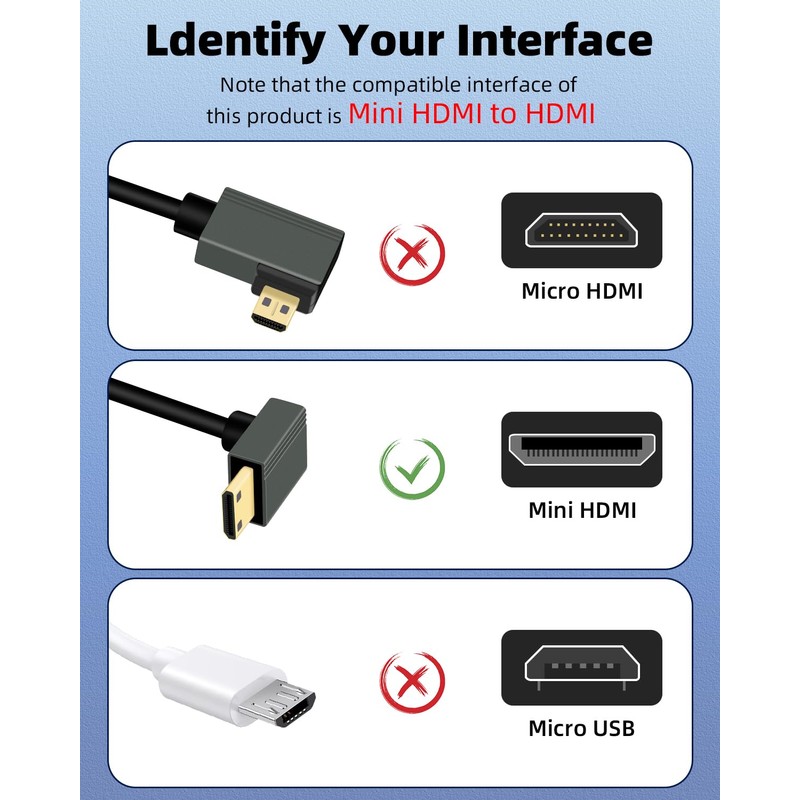 - 90° Angle Design This 8K mini HDMI cable has a thoughtful 90 degree angle to avoid damage to the mini HDMI cable, can provide better cable management and durability in some situations by avoiding long-term bending.