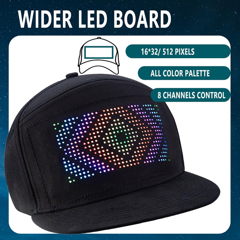 • 【Full Color Screen】Our led hat has a high resolution with light beads. And this highlight version has a wider screen, which can display many characters. That means that animations, pictures and texts are displayed more clearly and vividly. It's a nice choice for ads, and for party, music consert and hip pop.
