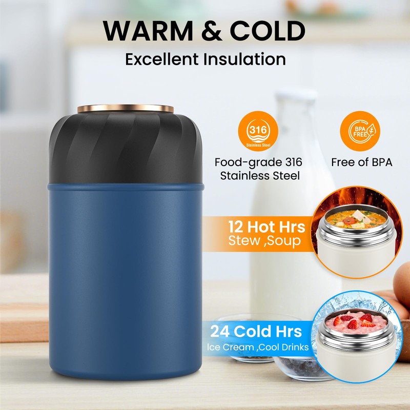 - All-Day Temperature Control: With innovative vacuum double walled insulation technology, Our thermo soup flask keeps food hot for 12 hours or cold for up to 24 hours, Whether it's warm lunch at school or cool yogurt for a trip, kids can enjoy fresh meals anytime, Ideal for picky eaters and busy parents