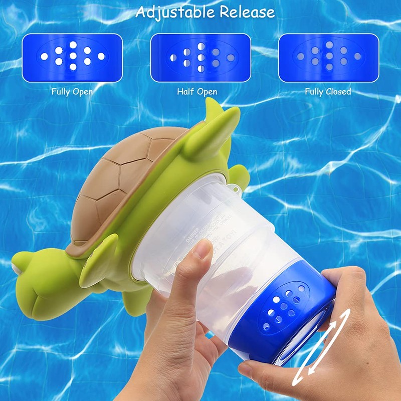 Geluode Floating Chlorine Dispenser,Swimming Pool Spa Hot Tubs Chemical Dispenser Adjustable Floating Tablet Chlorine Holds 3 Inch Chemical Tablets (Turtle)