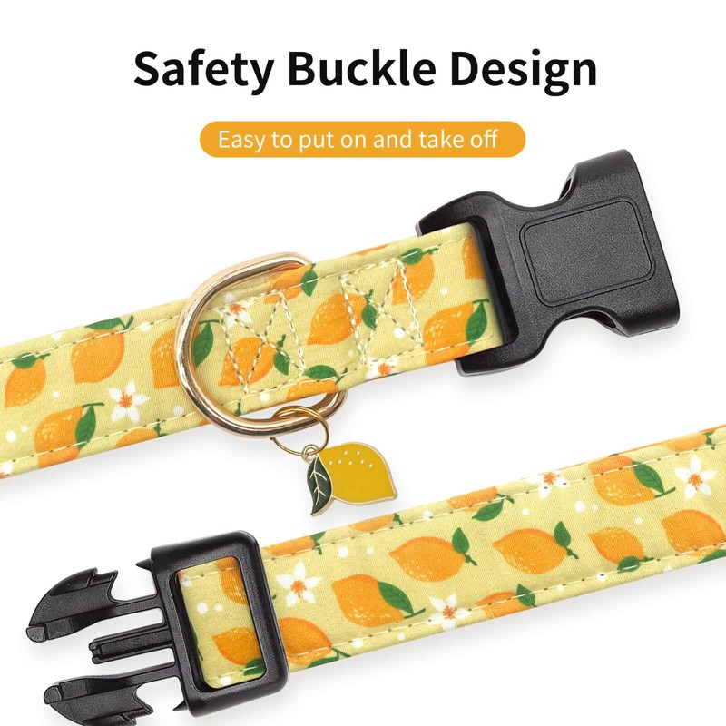 - 【Unique Design】:The special design puppy collar is printed with lemon patterns and cute pendant,suitable for all breeds, boys, girls, males and females. The collar make your dogs look stylish, adorable and elegant while travelling, daily walking.