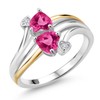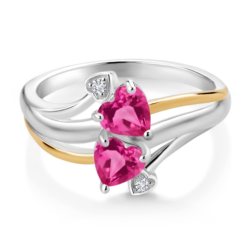 Gem Stone King 1.22 Cttw Pink Created Sapphire 925 Silver and 10K Yellow Gold 2 Heart Promise Couple Engagement Mother Lab Grown Diamond Ring | Available In Size 5, 6, 7, 8, 9