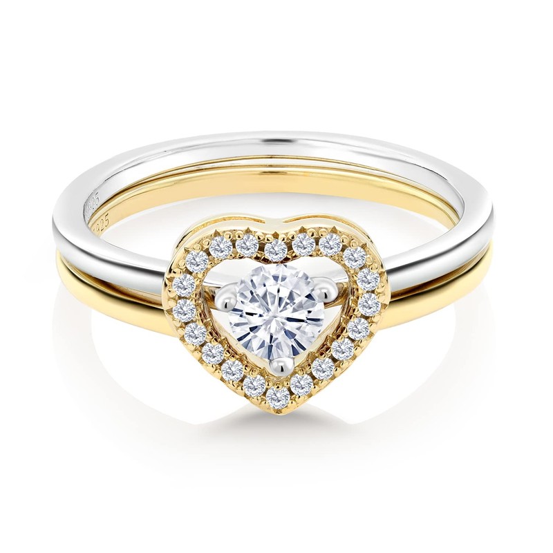 Gem Stone King 18K 2-Tone Plated Sterling Silver Ring Set with Moissanite (0.47 Cttw, Gemstone Birthstone, Available In Size 5, 6, 7, 8, 9), Sterling Silver, Gemstone, moissanite and zirconia