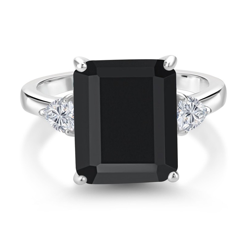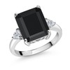 Gem Stone King 6.05 Cttw Black Onyx and Lab Grown Diamond 3-Stone Engagement Ring For Women | 925 Sterling Silver | Emerald Cut 12X10MM and Trillion 3.5MM | Available in Size 5,6,7,8,9