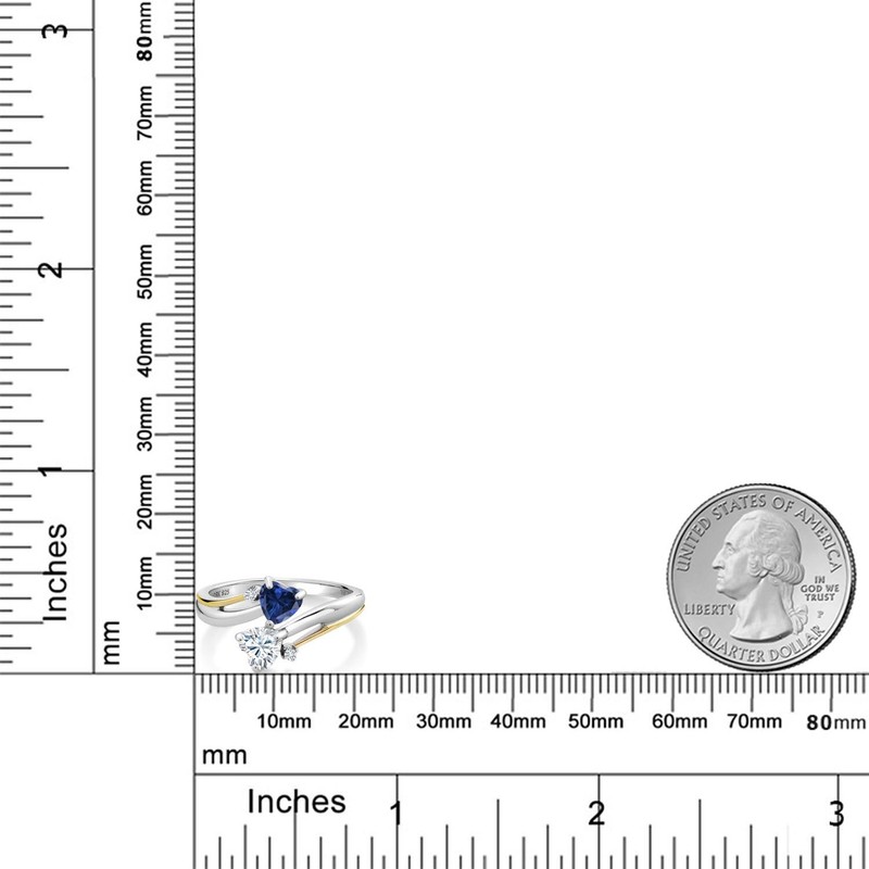 Gem Stone King 925 Silver and 10K Yellow Gold Blue Created Sapphire and Moissanite 2 Promise Couple Engagement Mother Ring (1.02 Cttw) (Size 6)