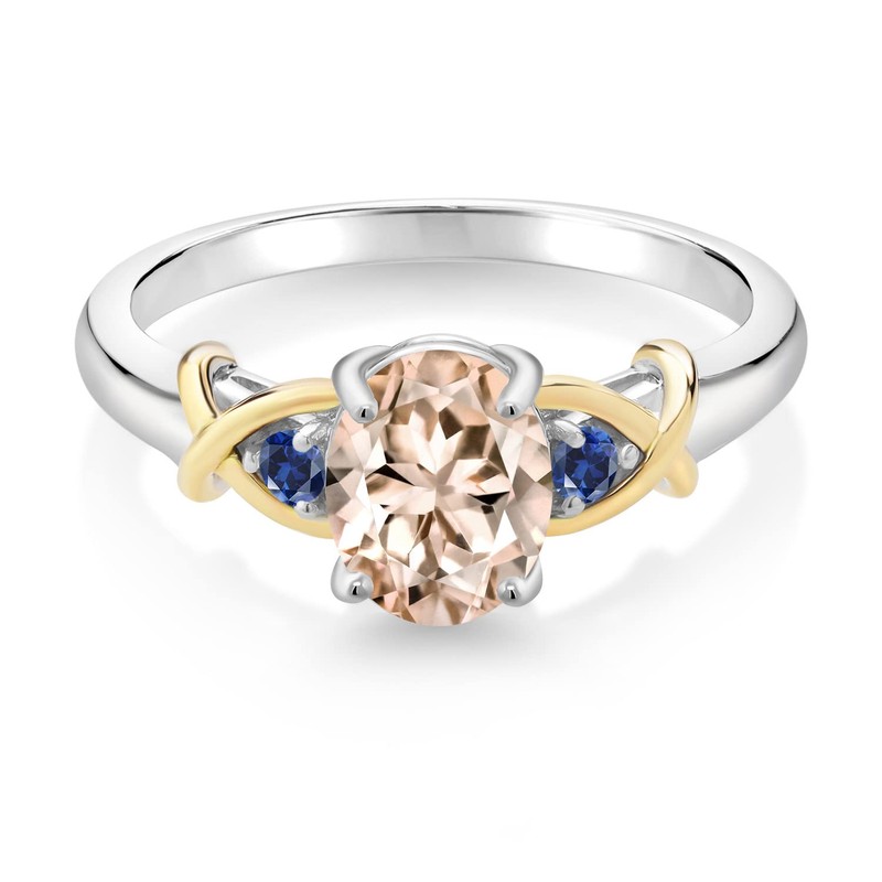Gem Stone King 925 Silver and 10K Yellow Gold Peach Morganite and Blue Created Sapphire Ring For Women (1.09 Ct tw, Gemstone Birthstone, Available In Size 5, 6, 7, 8, 9)