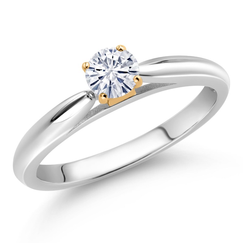 Gem Stone King 925 Silver and 10K Yellow Gold Ring White Moissanite Solitaire Engagement Ring For Women | 0.23 Cttw | Round 4MM | Available In Size 5, 6, 7, 8, 9
