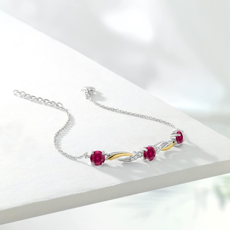 - Stunning Red Created Ruby Gemstones: Revel in the beauty of the stunning red created rubies that grace this bracelet. With a total carat weight of 3.04 Cttw, the rubies add a pop of vibrant color, symbolizing love and passion, making it a meaningful and stylish accessory.