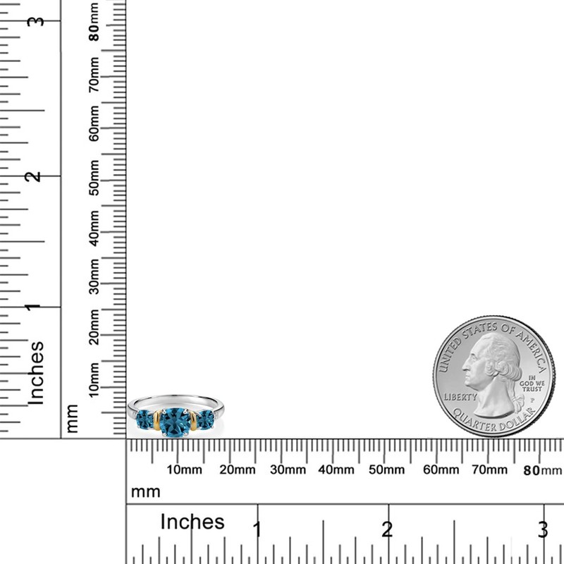 - Striking London Blue Topaz: This stunning ring showcases a cushion-cut London blue topaz gemstone (6MM and 4MM), radiating a deep and captivating blue hue. The London blue topaz is known for its intense color and adds a touch of sophistication to the design. Total Carat Weight is 1.9 cttw.