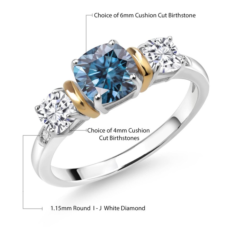- Customized Birthstone Brilliance: Personalize your ring with a 6MM and 4MM cushion-cut gemstone of your choice, representing your birth month or a loved one's birthstone. The customizable aspect adds a sentimental touch, making this ring a unique and meaningful keepsake.