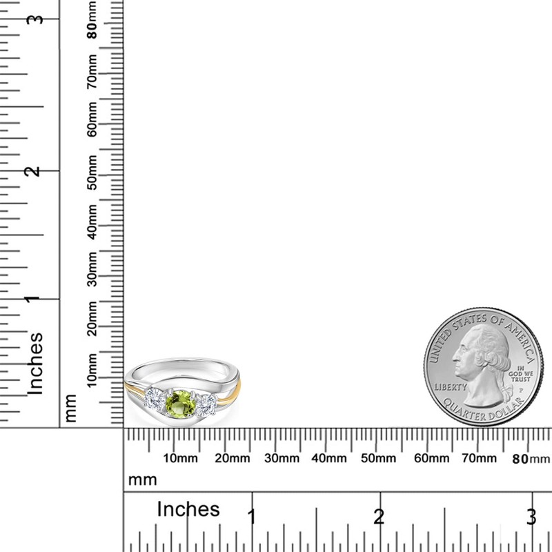 Gem Stone King 925 Sterling Silver and 10K Yellow Gold Round Green Peridot and White Moissanite Ring For Women (1.01 Ct, Available in Size 5, 6, 7, 8, and 9)