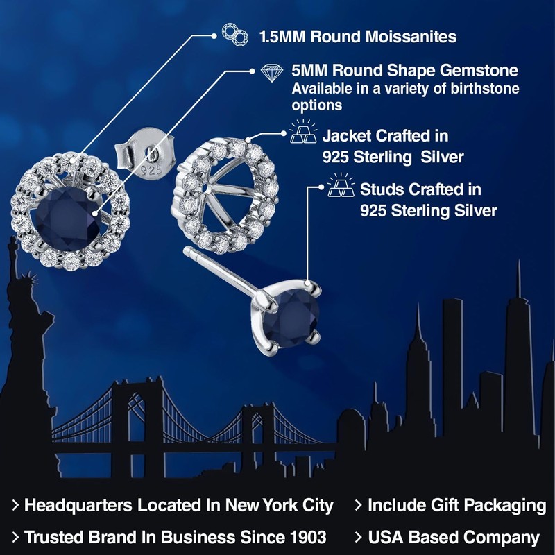 Gem Stone King 925 Sterling Silver Blue Sapphire and Moissanite Women Stud Earrings with Removable Jackets (1.62 Cttw, Center Stone: 5MM)