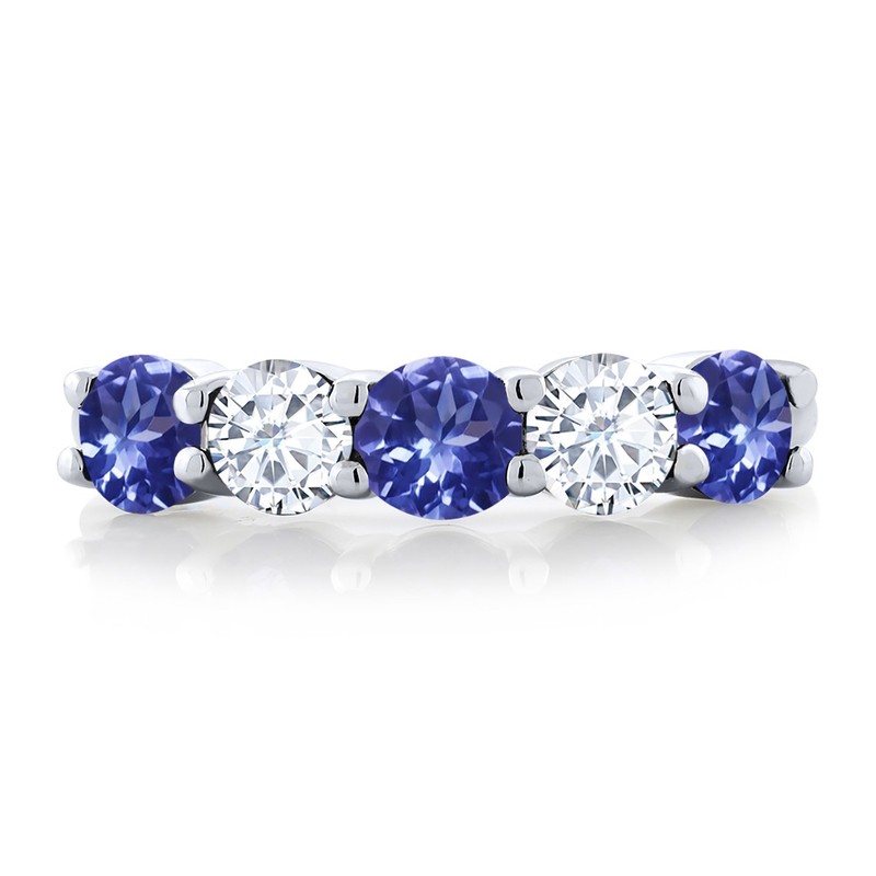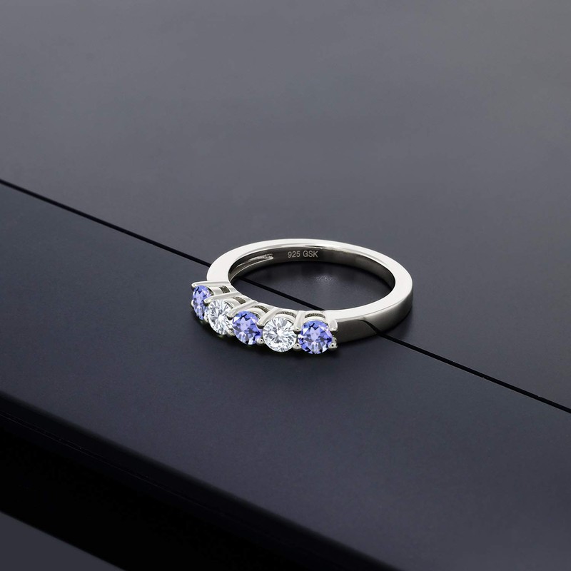 Gem Stone King 925 Sterling Silver Blue Tanzanite and White Moissanite Wedding Band Ring For Women (0.86 Cttw, Round 3.5MM, Gemstone December Birthstone, Available In Size 5, 6, 7, 8, 9)